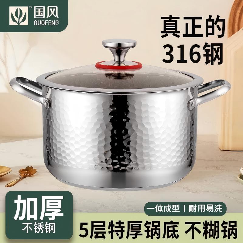 国风316不锈钢汤锅加厚家用蒸锅煮粥锅炖锅双耳燃气灶电磁炉专用