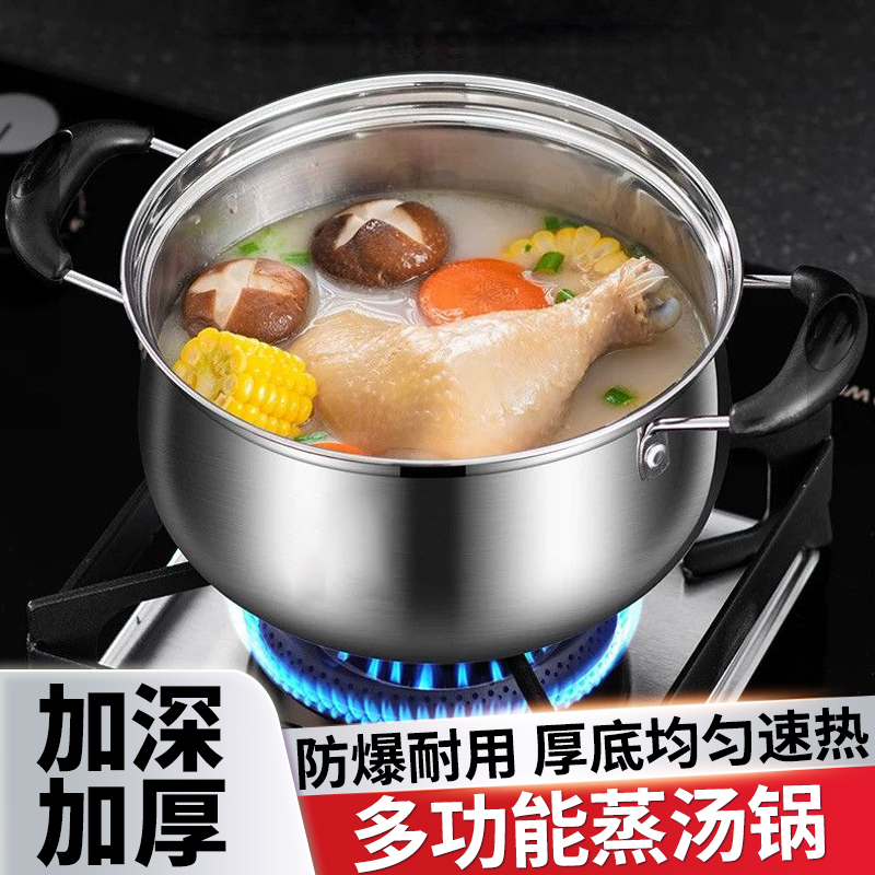 304不锈钢汤锅加厚家用多功能燃气煮锅电磁炉煮粥煮面蒸煮炖锅