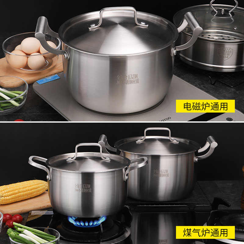 304不锈钢汤锅加厚家用煮汤锅炖锅奶锅双层蒸锅电磁炉燃气灶通用