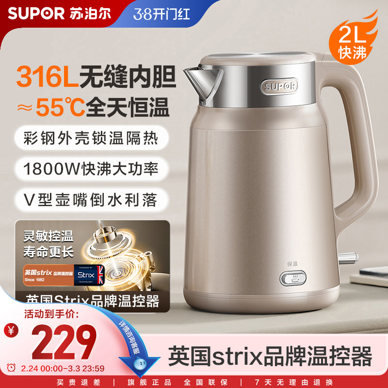 苏泊尔电热水壶恒温烧水壶保温一体家用大容量316L不锈钢2025新款