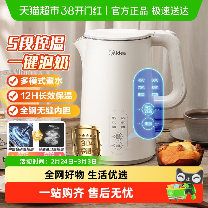 美的恒温电热水壶家用智能全自动不锈钢烧水壶保温一体热水壶官方