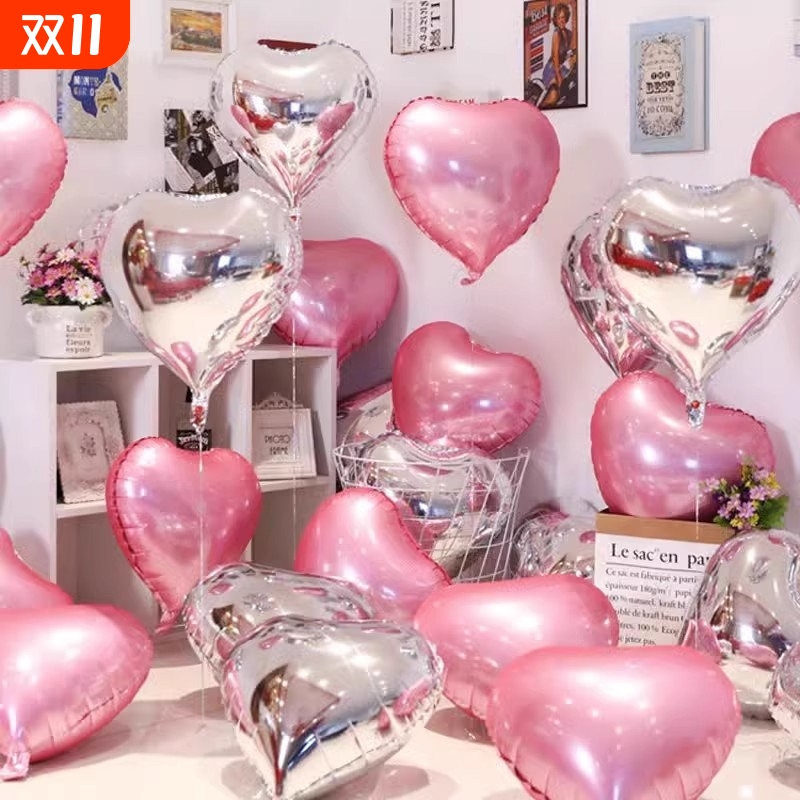 爱心铝膜飘空气球结婚订婚表白场景氛围布置心形生日装饰汽球打气