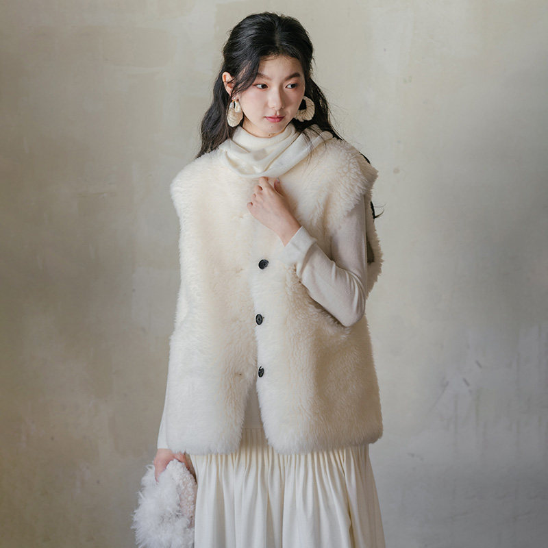 2025新款仿羊羔毛环保皮草女欧尼马甲中长款皮毛一体双领毛毛外套