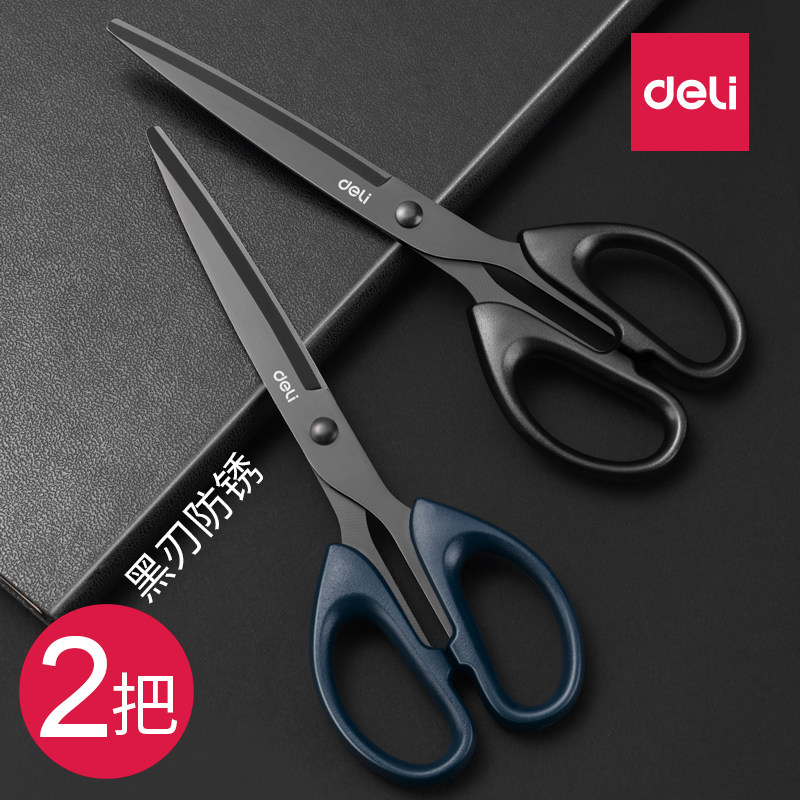 得力剪刀防锈防黏黑刃剪刀特氟龙镀层锋利不锈钢剪刀办公剪刀不粘家用剪刀学生中号大号涂层无尖圆头剪子