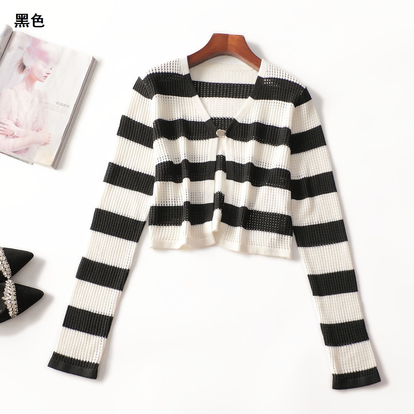 出口棉线黑色针织开衫 女 春秋 不褪色抗起球V领长袖薄针织衫外套