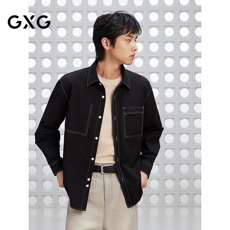 GXG男装 明线设计长袖衬衫时尚男通勤衬衣休闲上衣 2025夏季新品