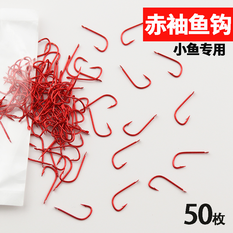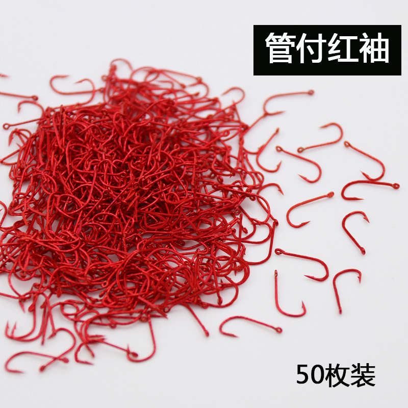 赤袖鱼钩红色管付散装袖钩野钓小鲫鱼长柄细条钩路亚白条马口金袖