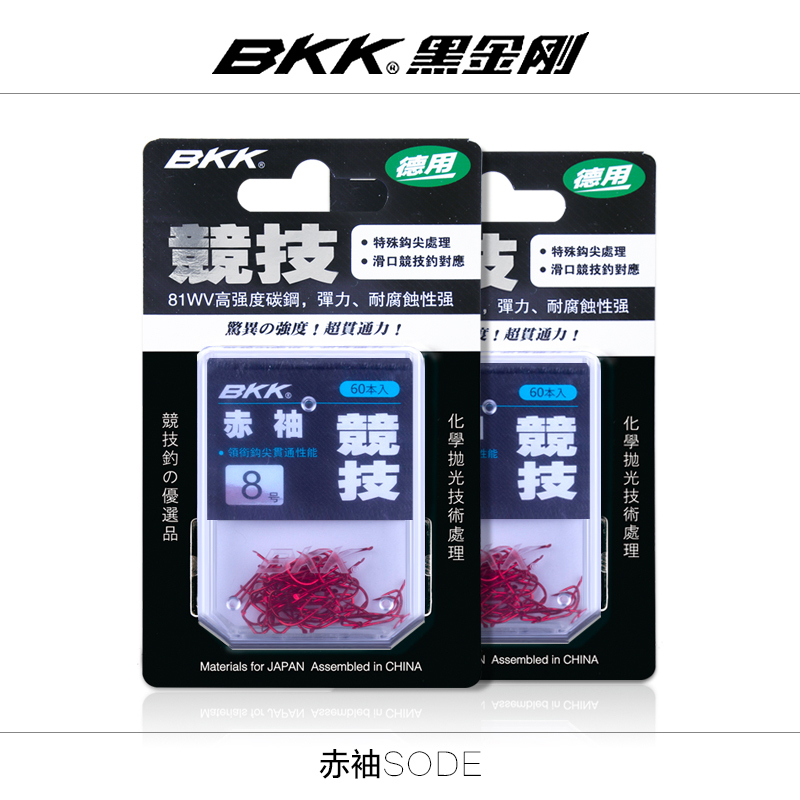 BKK红色赤袖鱼钩袖钩 日本进口高碳钢 有无倒刺竞技钩 鲫鱼钩渔具