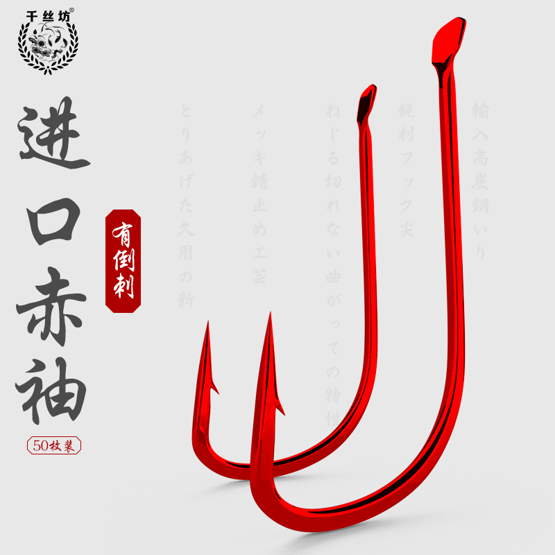 千丝坊新型赤袖鱼钩散装有倒刺鲤鱼鲫鱼钩日本进口不跑鱼的钓鱼钩