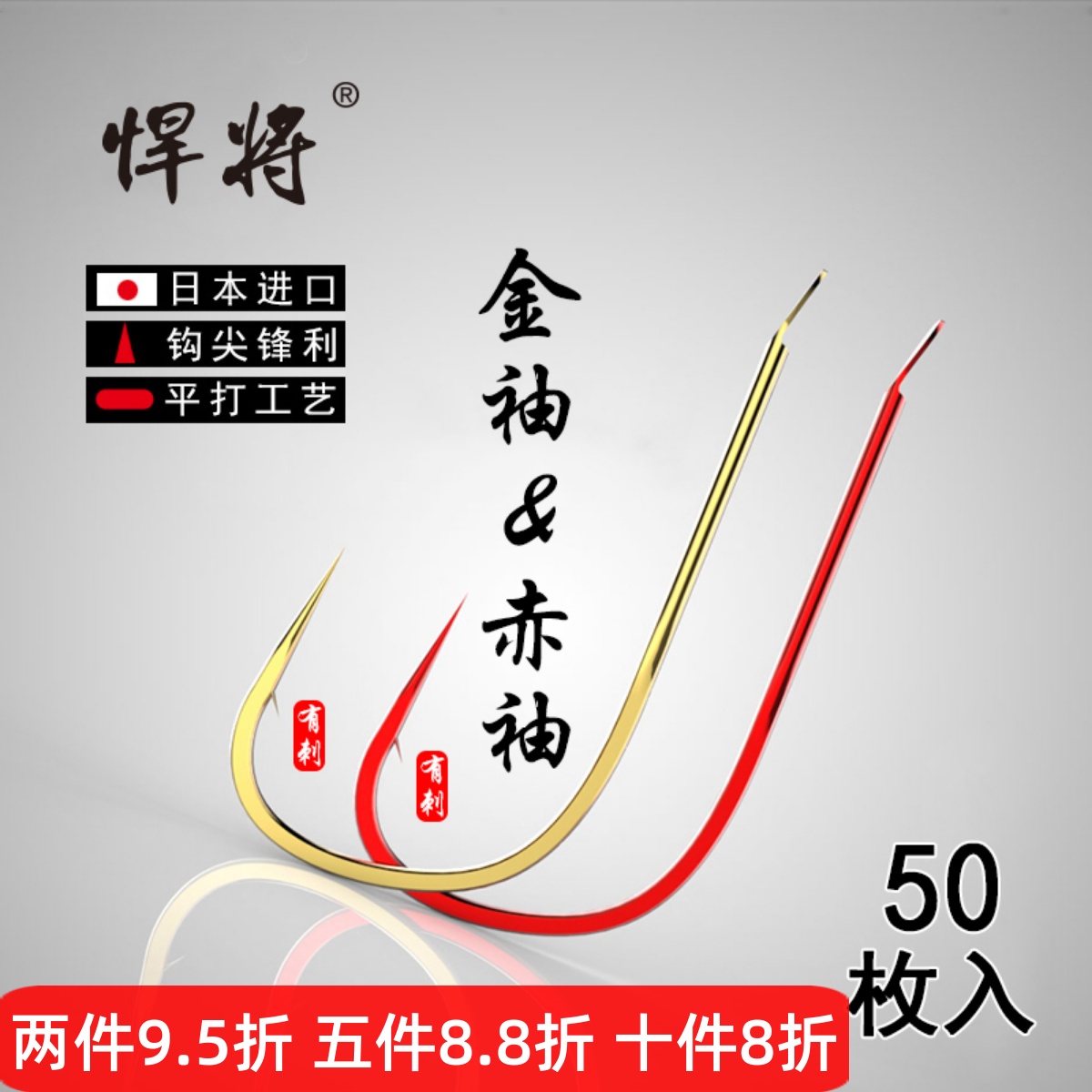 悍将鱼钩日本进口袖钩散装金袖有刺细条长柄野钓鲫鱼白条赤袖鱼钩