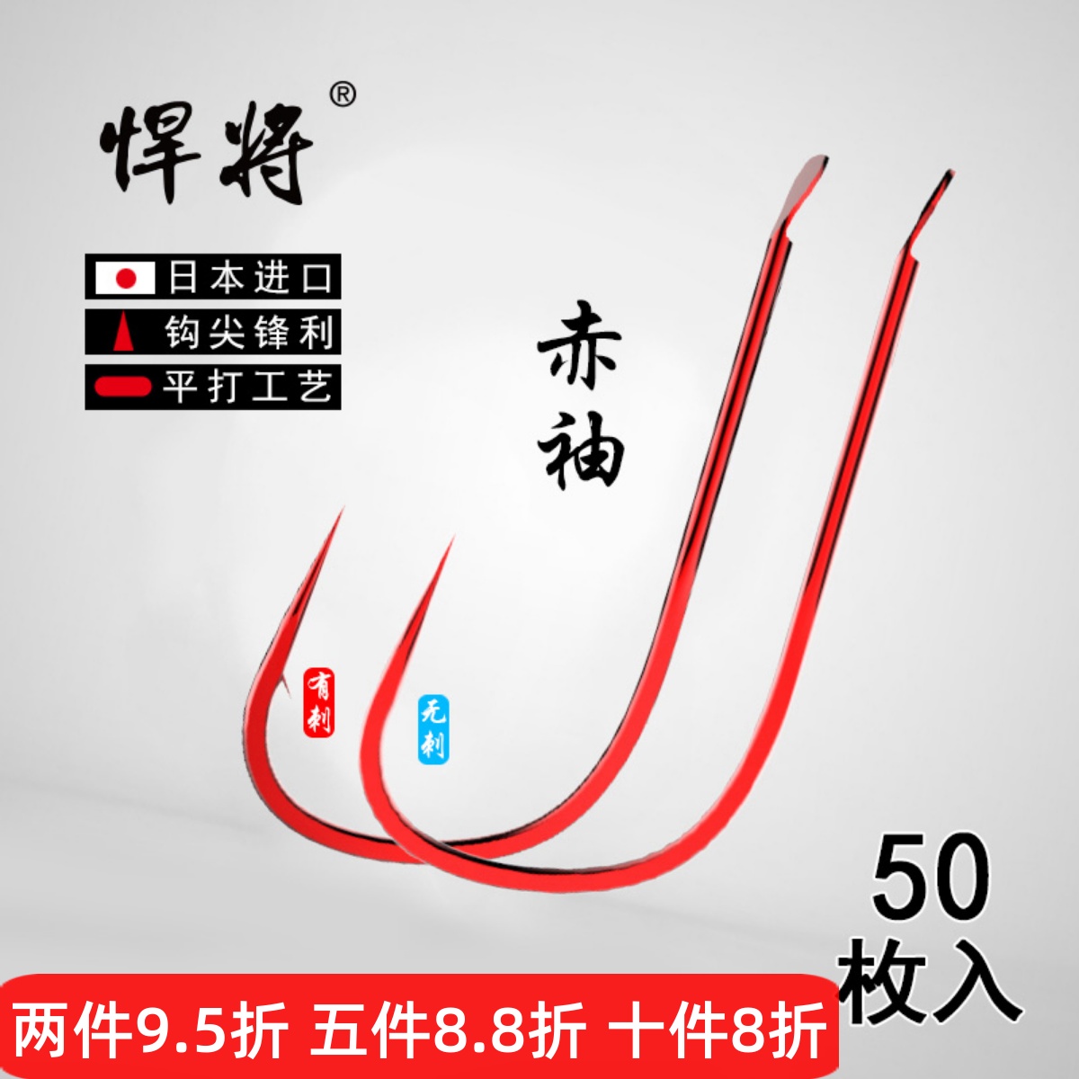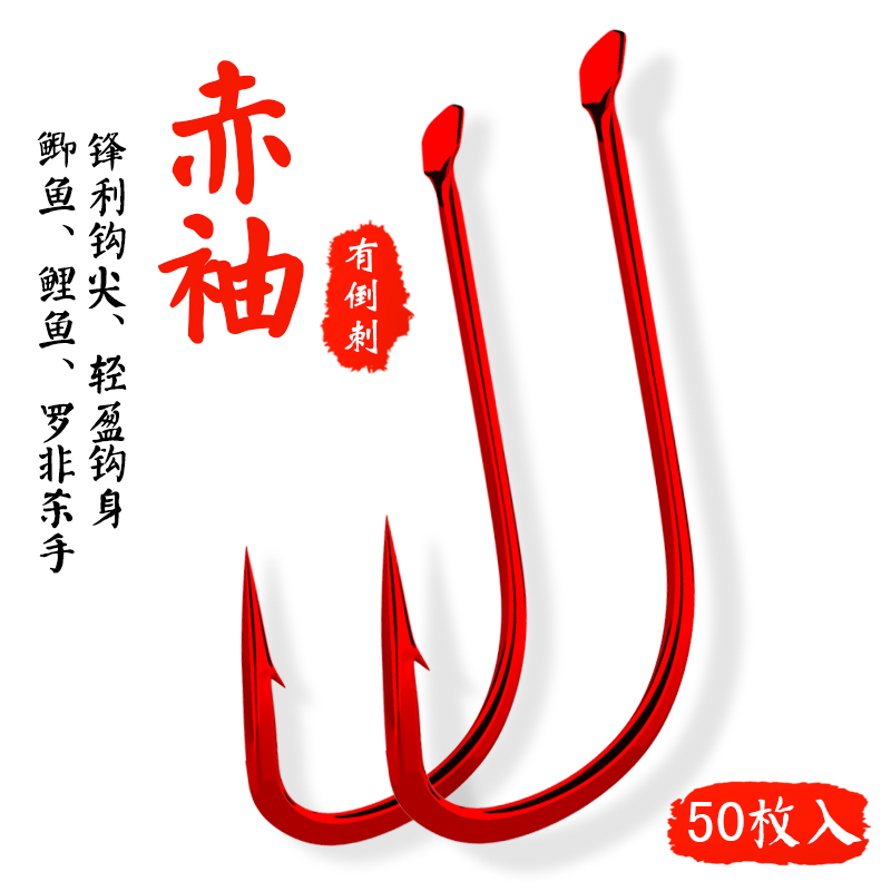 博悦赤袖鱼钩50枚进口有倒刺散装渔钩鲫鲤鱼钩钓鱼专用钩渔具垂钓