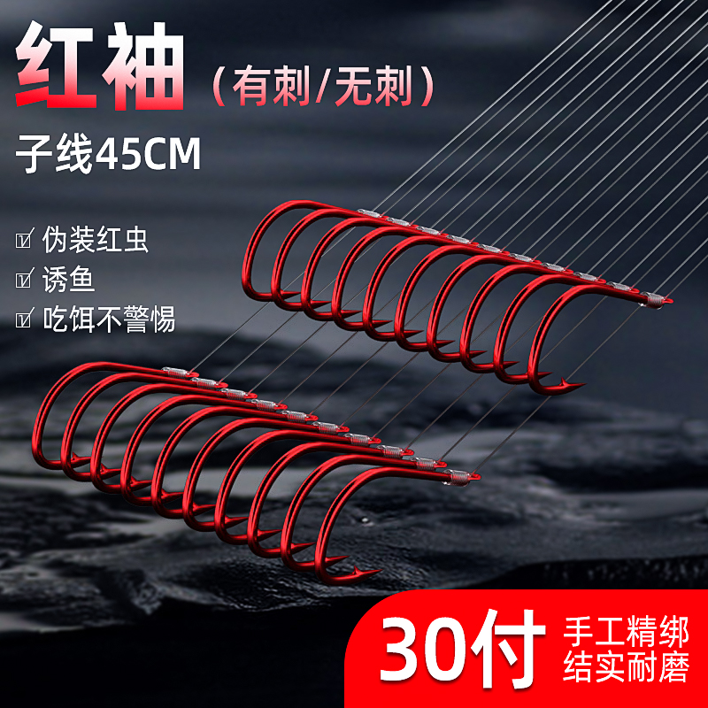 佳钩子线【自选钩线】红袖+东丽子线赤袖鱼钩40付盒装手工精绑