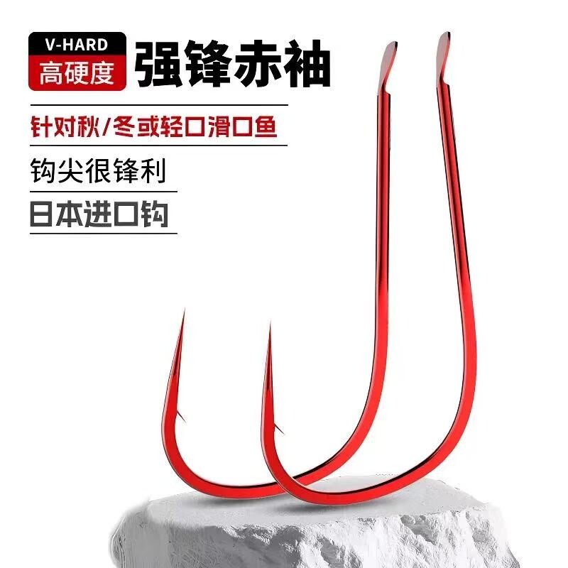 渔舵日本进口正品红虫钩极细细条赤袖鲫鱼钩有刺长柄超强红色散装