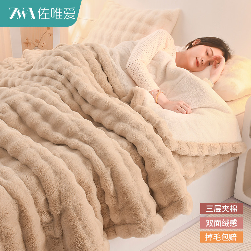 兔毛绒毛毯被子2025新款加厚保暖冬季毯子珊瑚绒盖毯办公室午睡毯