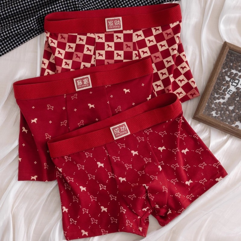 森日马年本命年男士内裤大红色可爱A类纯棉新年四角裤平角裤男士