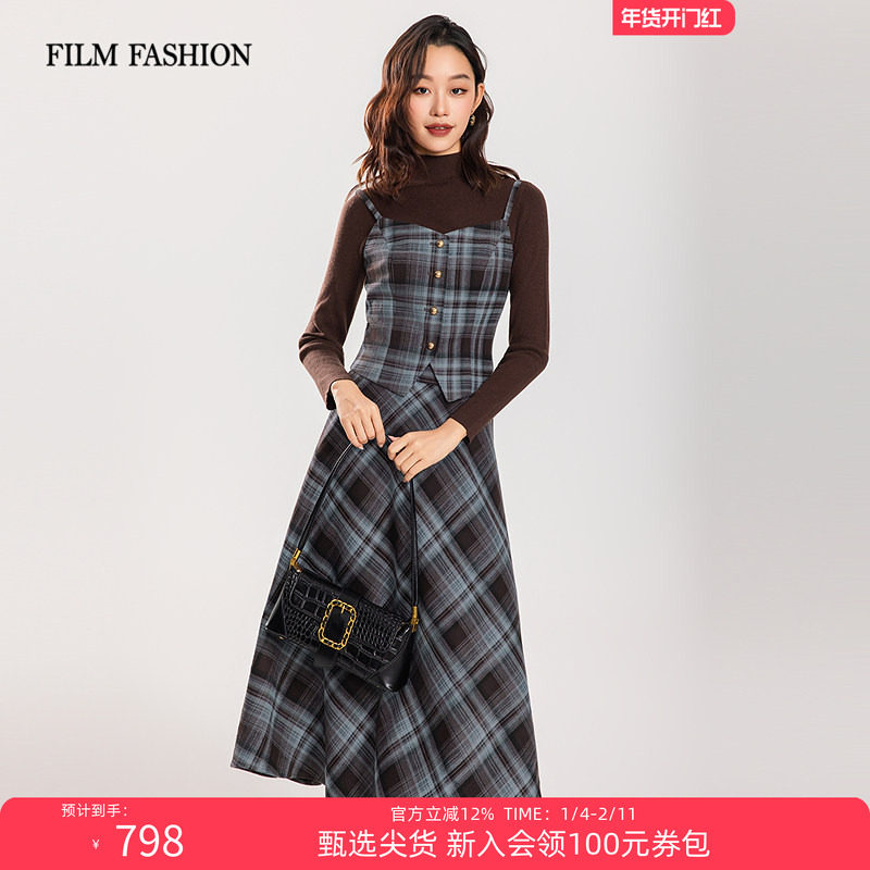 【新年穿搭】一电影一时装2025冬季新款复古格纹三件套套装女独特