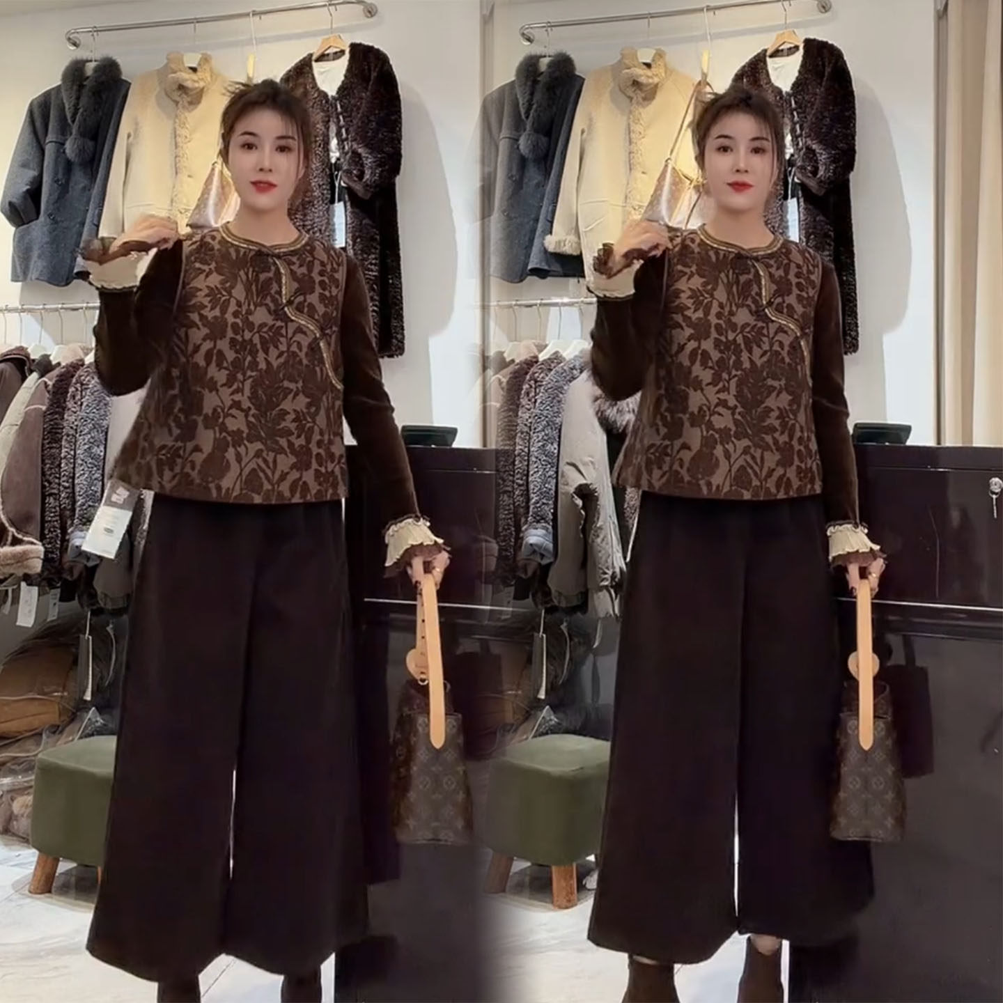 2025秋冬季新款中国风时尚三件套女复古高级感马甲小衫阔腿裤套装