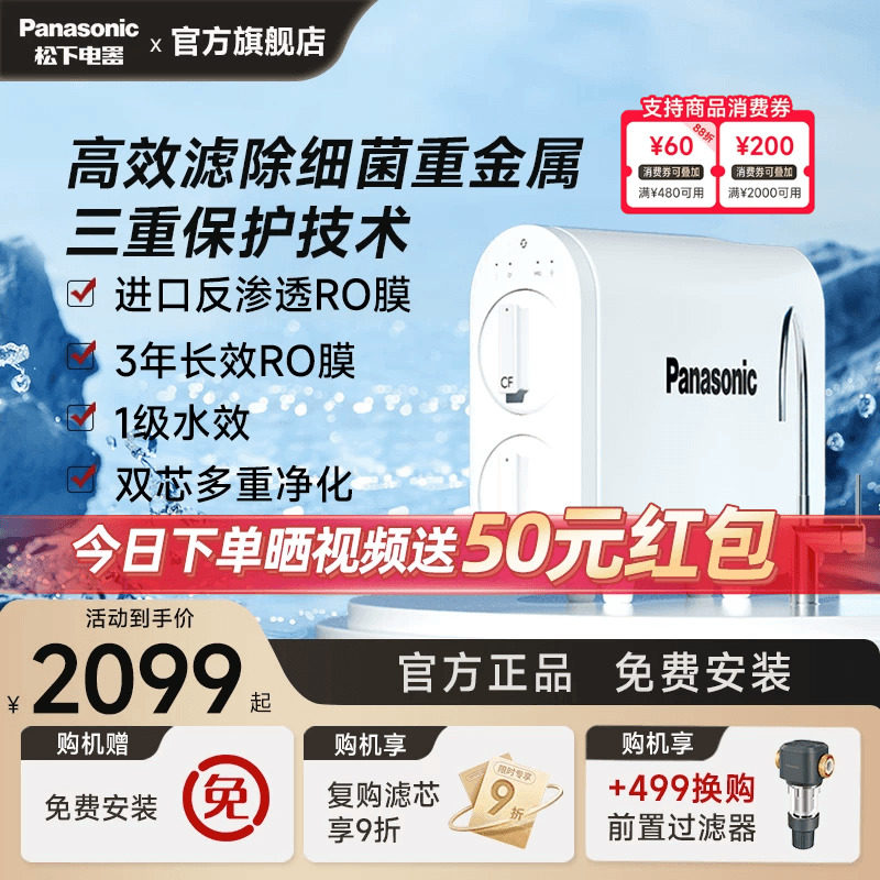 松下净水器ro反渗透厨下式自来水过滤水净化器净水机家用直饮机BT