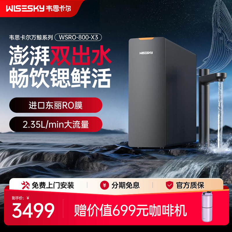 韦思卡尔万鲸系列厨下净水器RO反渗透双出水净水机家用直饮X3