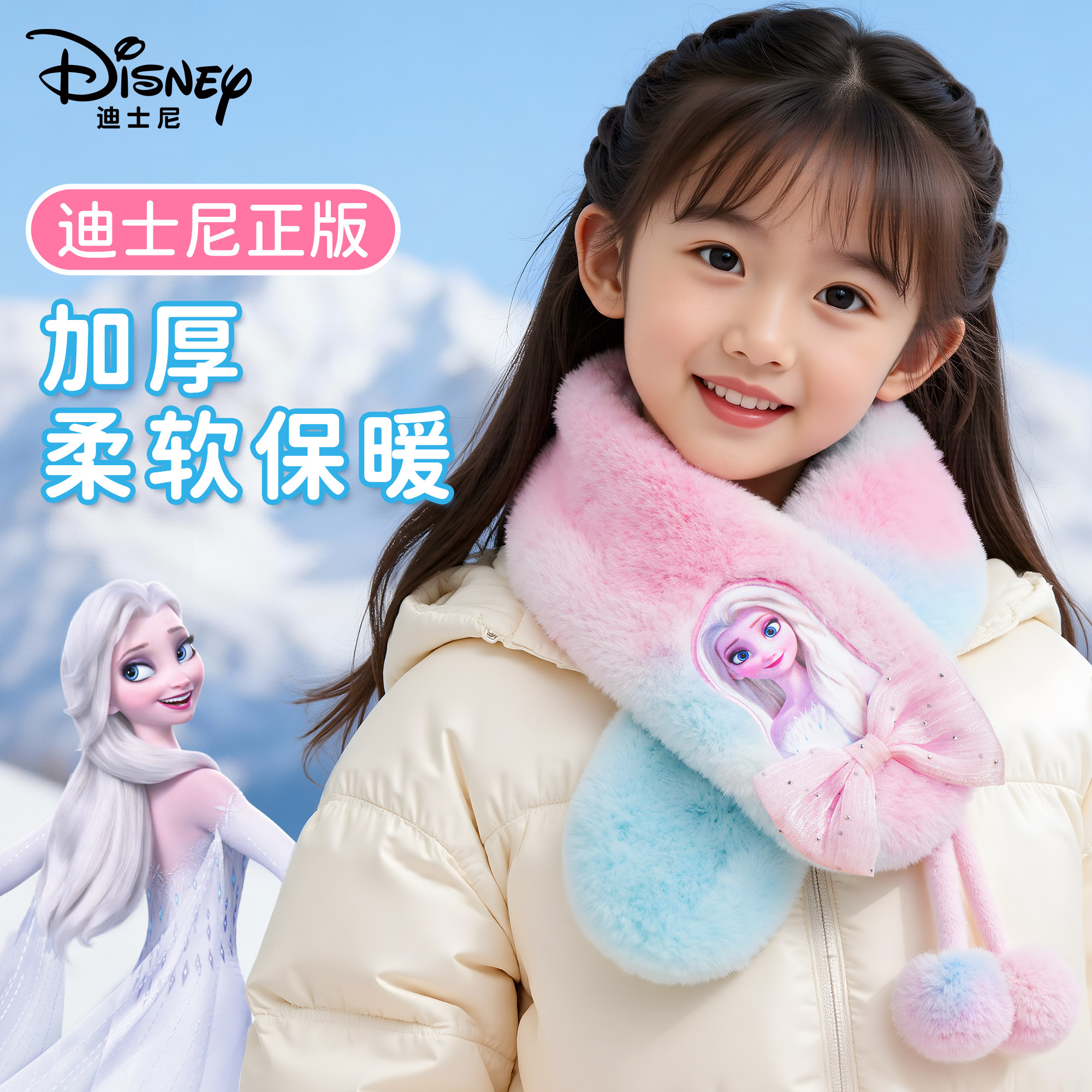 迪士尼秋冬围巾女童儿童保暖围脖艾莎冬款防寒围脖套男孩脖套耳罩