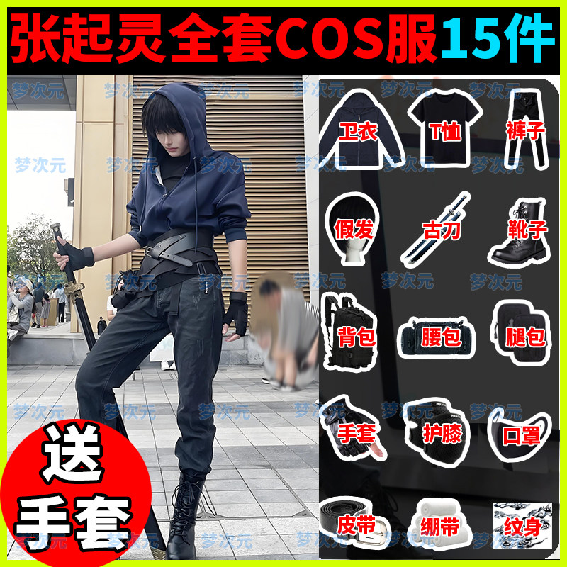 盗墓笔记小哥张起灵cos服全套假发同款外套卫衣裤子刀手套纹身贴