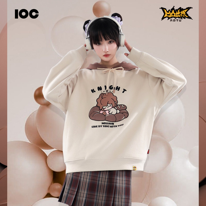 查尔斯桃心 动漫印花连帽卫衣男2026新款春秋季宽松休闲套头外套