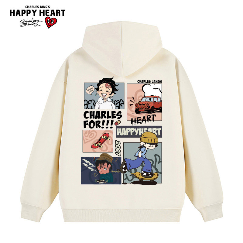查尔斯桃心 美式动漫风印花连帽卫衣男女春秋冬季宽松落肩袖外套