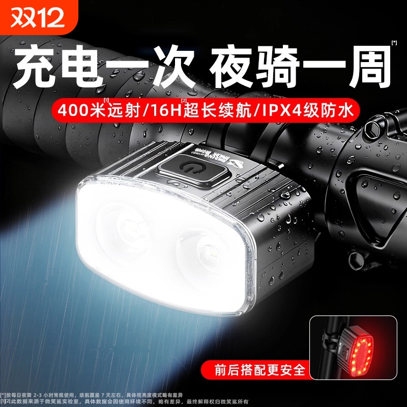 超亮自行车灯前灯手电筒强光夜骑尾灯可充电山地公路儿童骑行装备