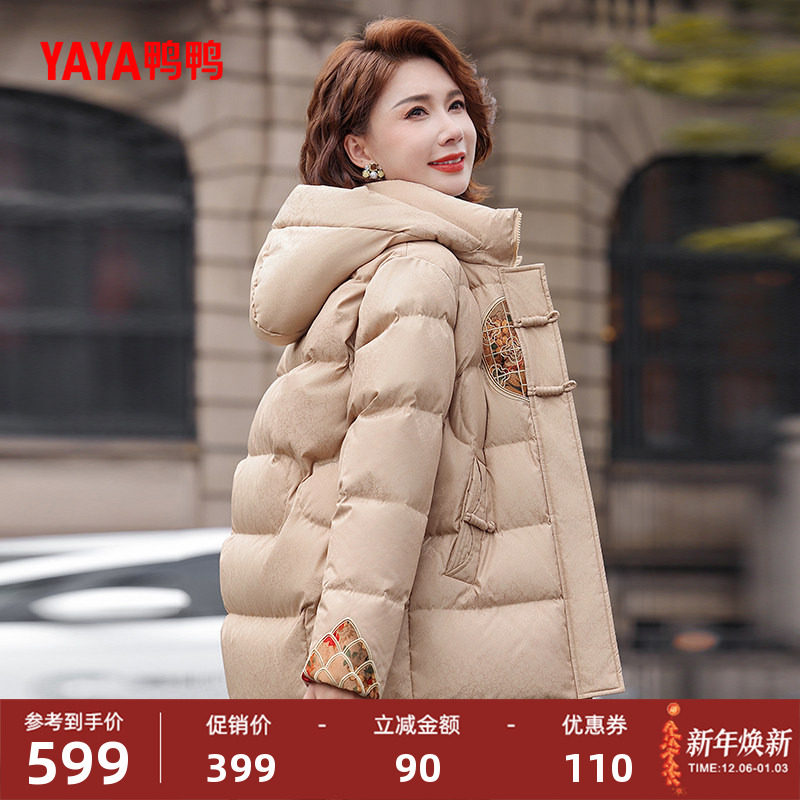 鸭鸭妈妈装羽绒服女2025秋冬新品中长款中老年加厚连帽保暖外套J