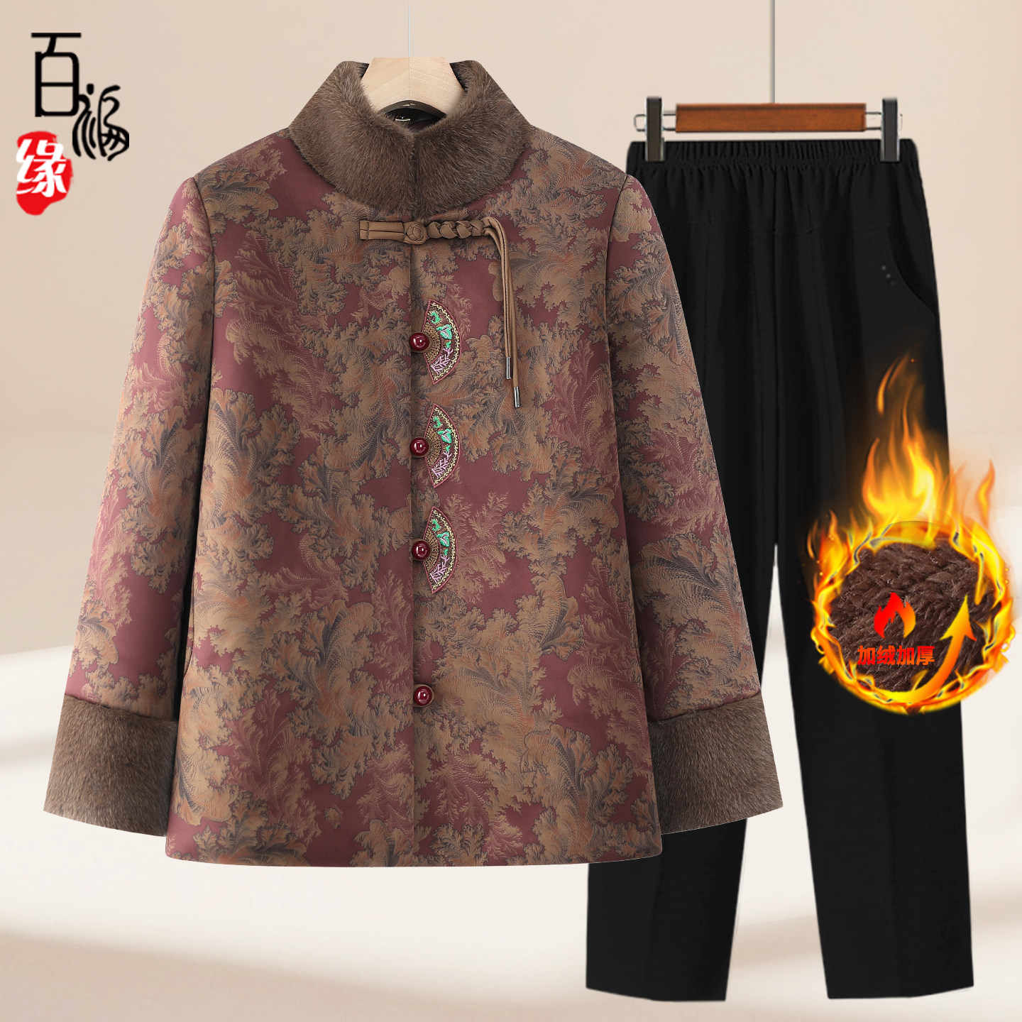 奶奶冬装棉衣中老年人女加绒厚外套太太衣服60岁70妈妈装棉袄套装