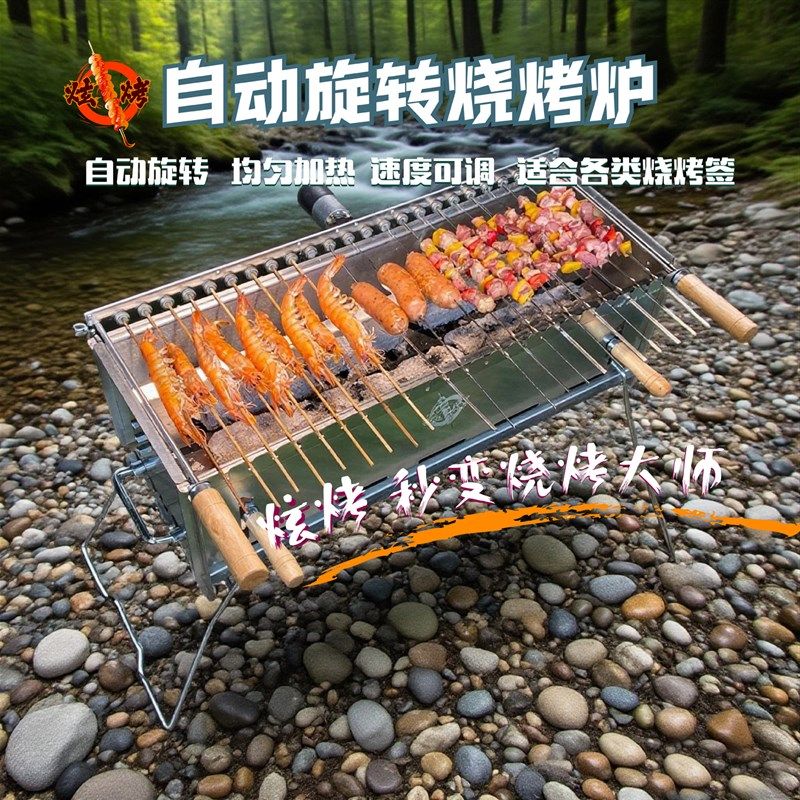 自动旋转烧烤炉便携式户外露营不锈钢烤肉炉自动U烤羊腿炉烤鸡炉
