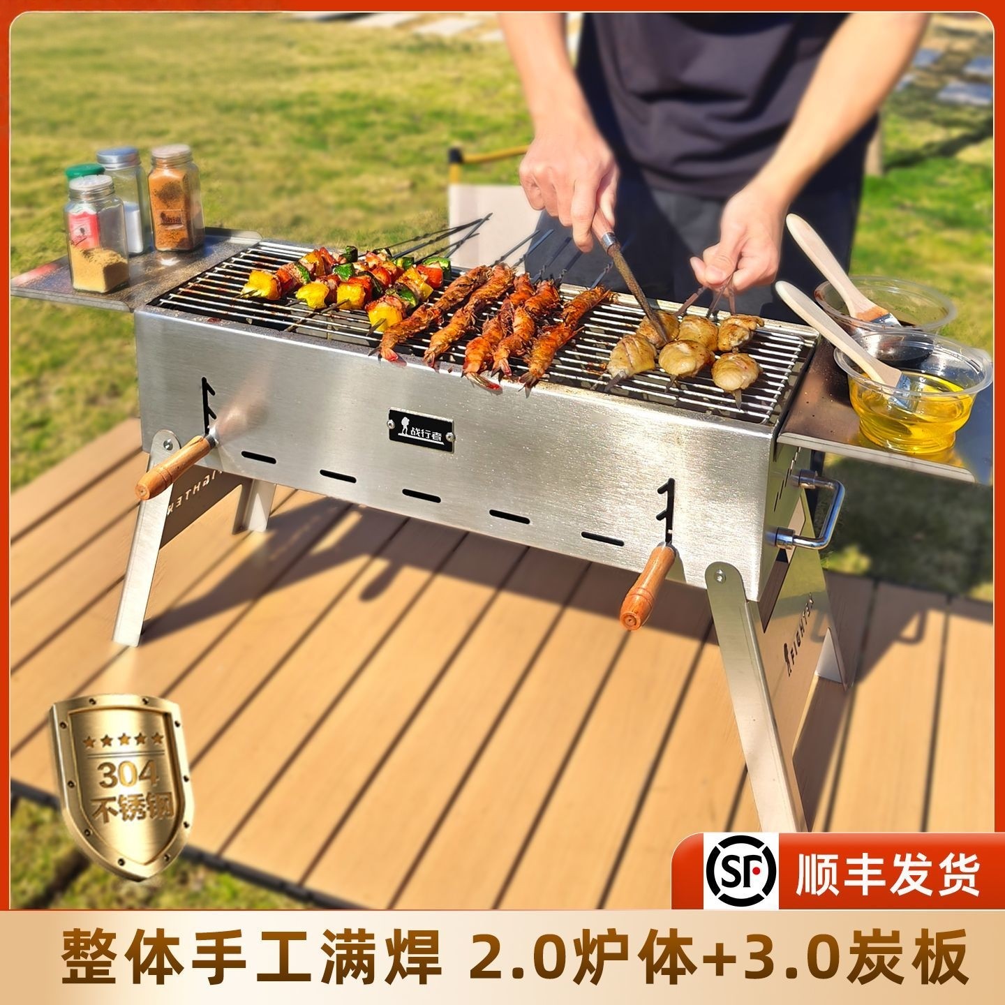 户外304不锈钢烧烤炉烧烤木炭折叠便携露营烤肉炉子烤羊腿炉bbq炉