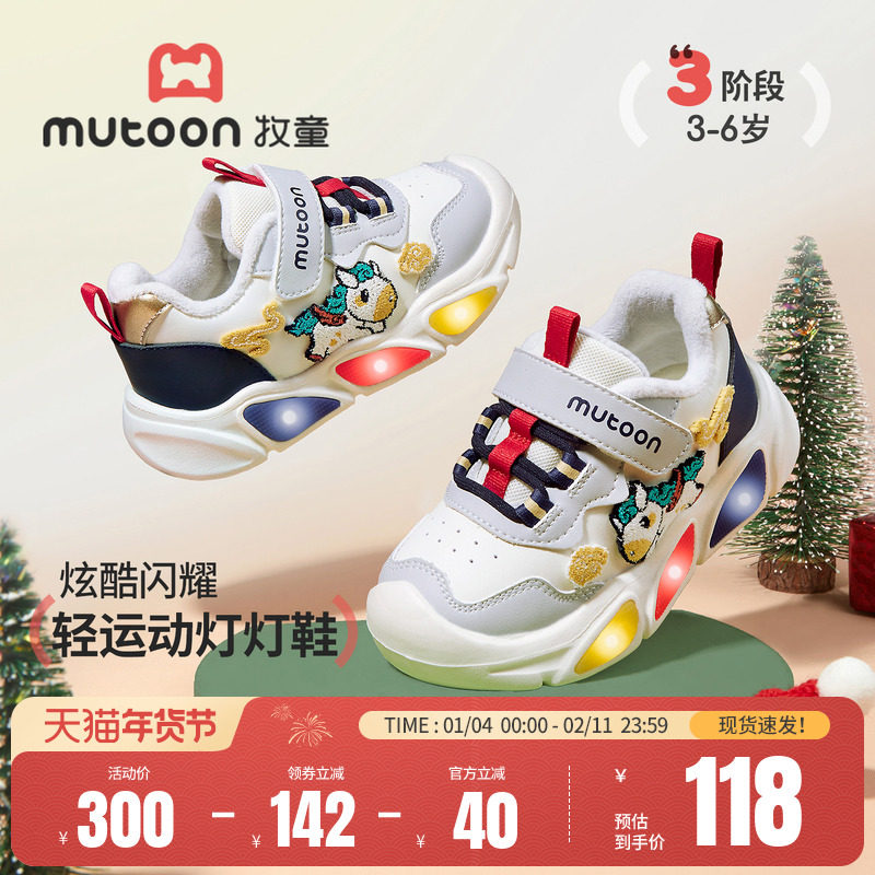 牧童童鞋儿童闪灯运动鞋2025冬季新款国风男童跑步鞋加绒女童棉鞋