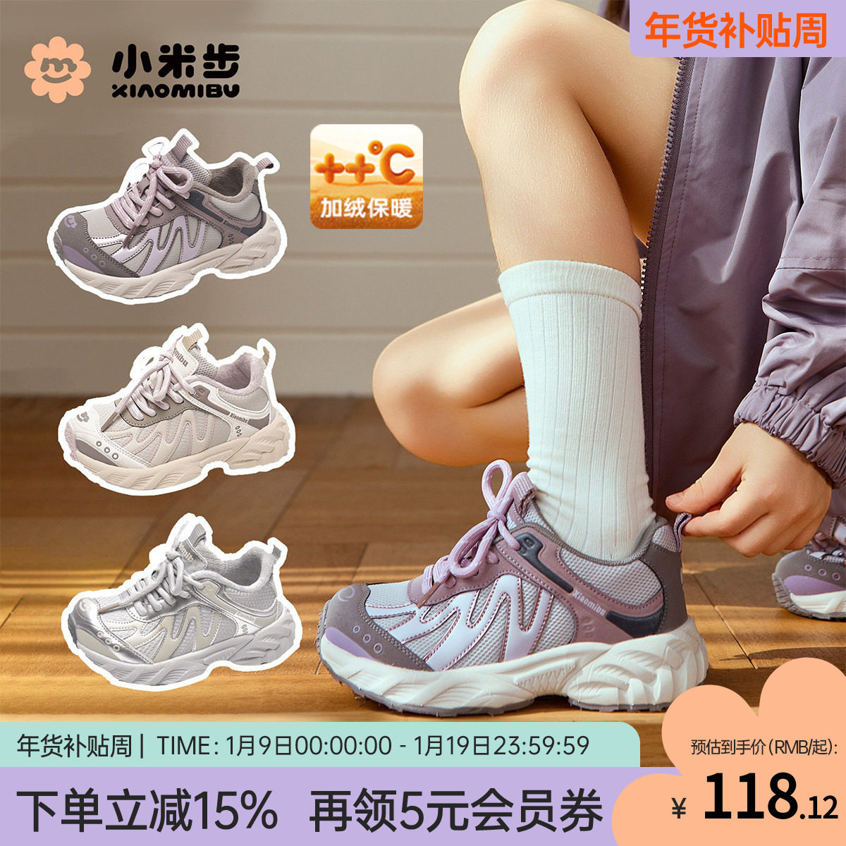 小米步女童运动鞋2025秋冬新款加绒老爹鞋儿童跑步鞋中大童男童鞋