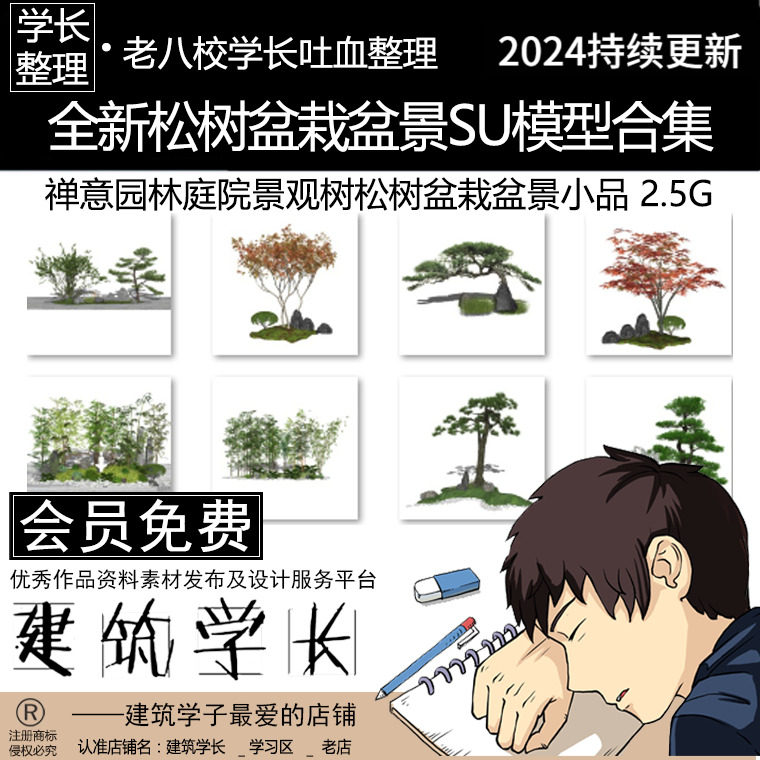 全新松树盆栽盆景SU模型合集 禅意新中式日式园林庭院景观树小品