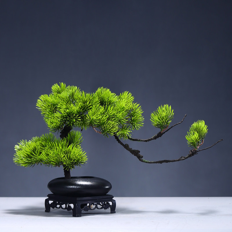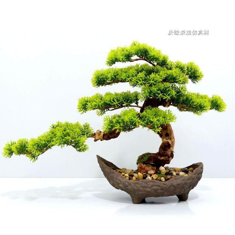 中式客厅禅意仿真小迎客松崖柏松树盆栽盆景摆件客厅室内玄关绿植