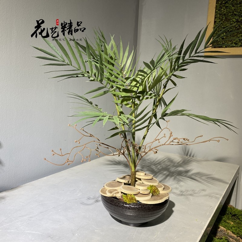 带根须仿真棕榈树盆栽盆景插花凤尾葵叶 树叶散尾葵树软胶多肉盆