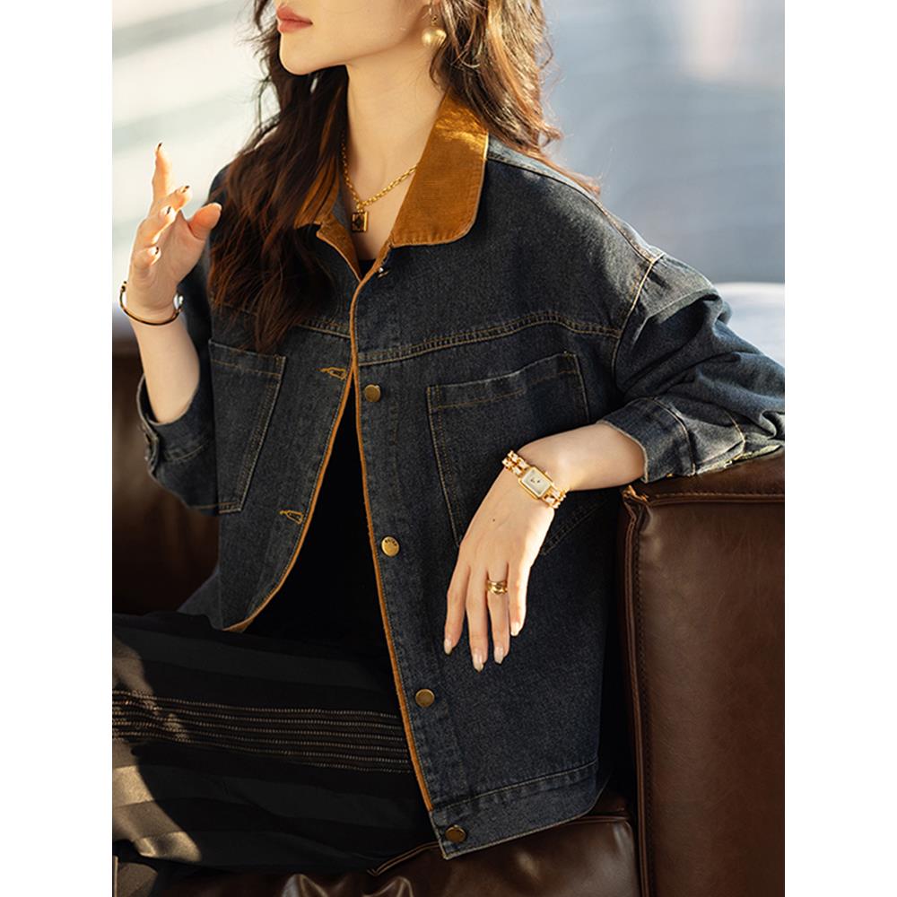 MONLOUVE牛仔短外套春秋女款2025新款今年流行爆款小个子拼接工装