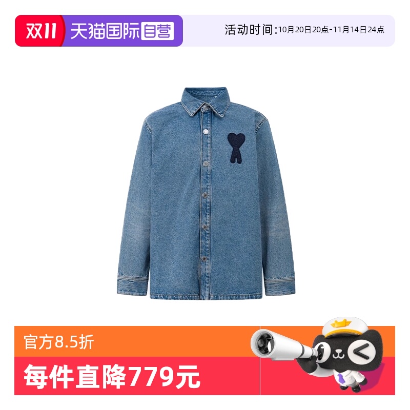 【自营】AMIPARIS春秋季新品爱心长袖衬衫休闲翻领牛仔外套男女款