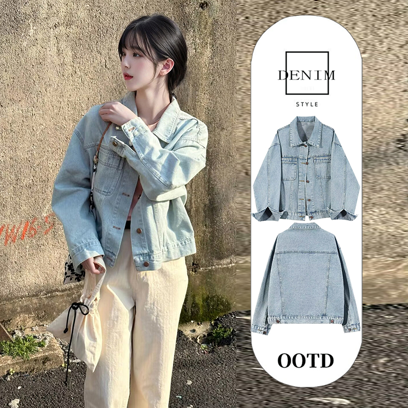 复古浅色牛仔外套女春秋装小个子女款2025年新款宽松显瘦bf慵懒风