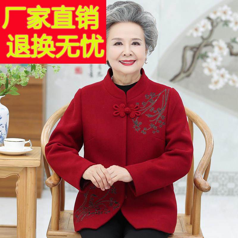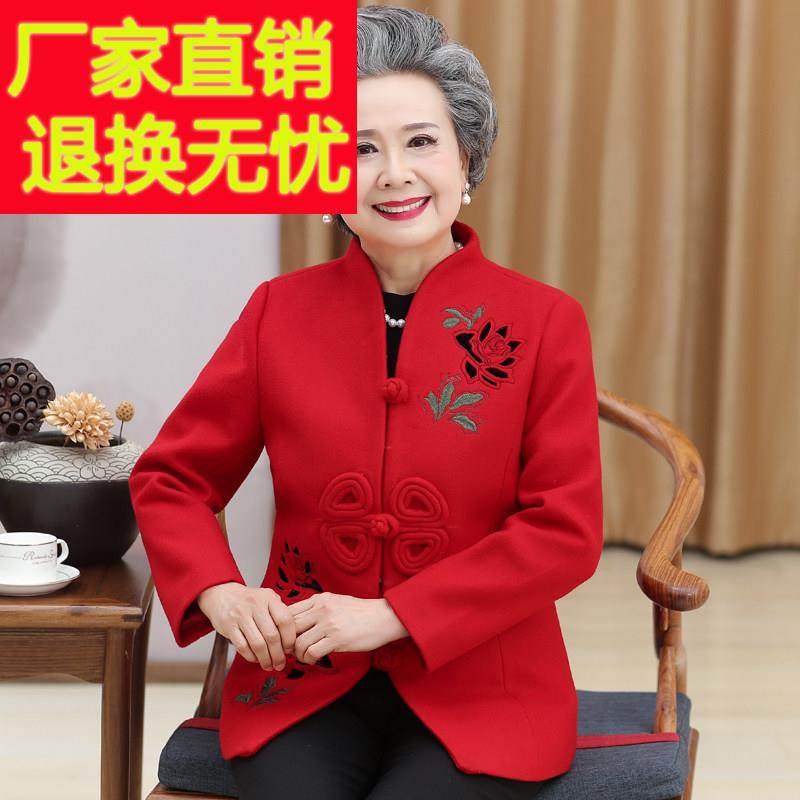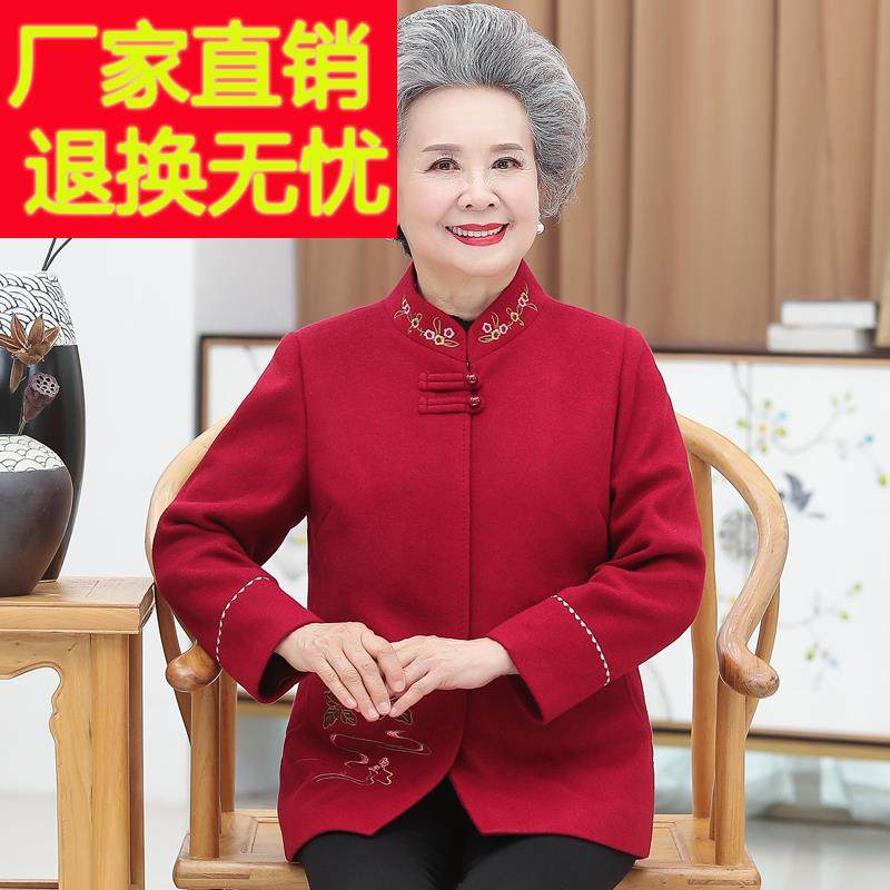 老年人秋装女毛呢外套老人祝寿生日唐装奶奶上衣婚礼妈妈结婚礼服