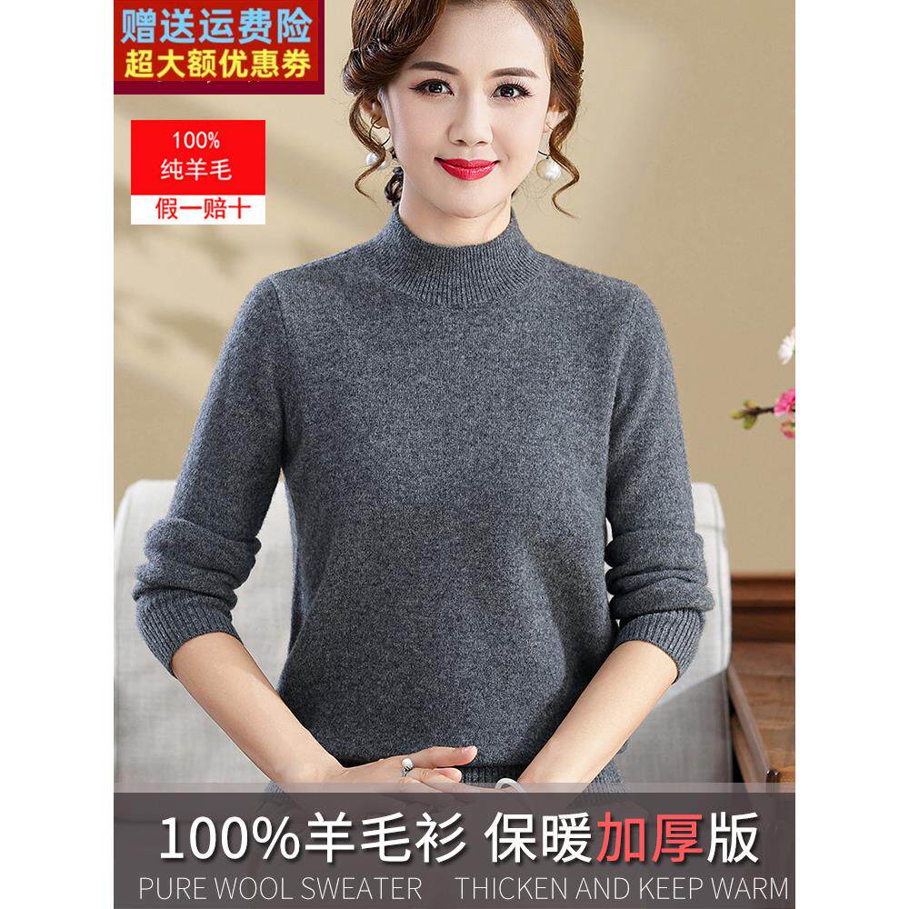 妈妈羊毛衫女100纯羊毛衫加厚打底衫中年老人秋冬半高领毛衣品牌