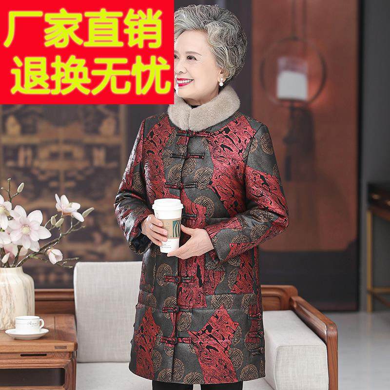 老年人冬装水貂绒棉衣外套女中长版妈妈装60岁70奶奶棉服老人唐装