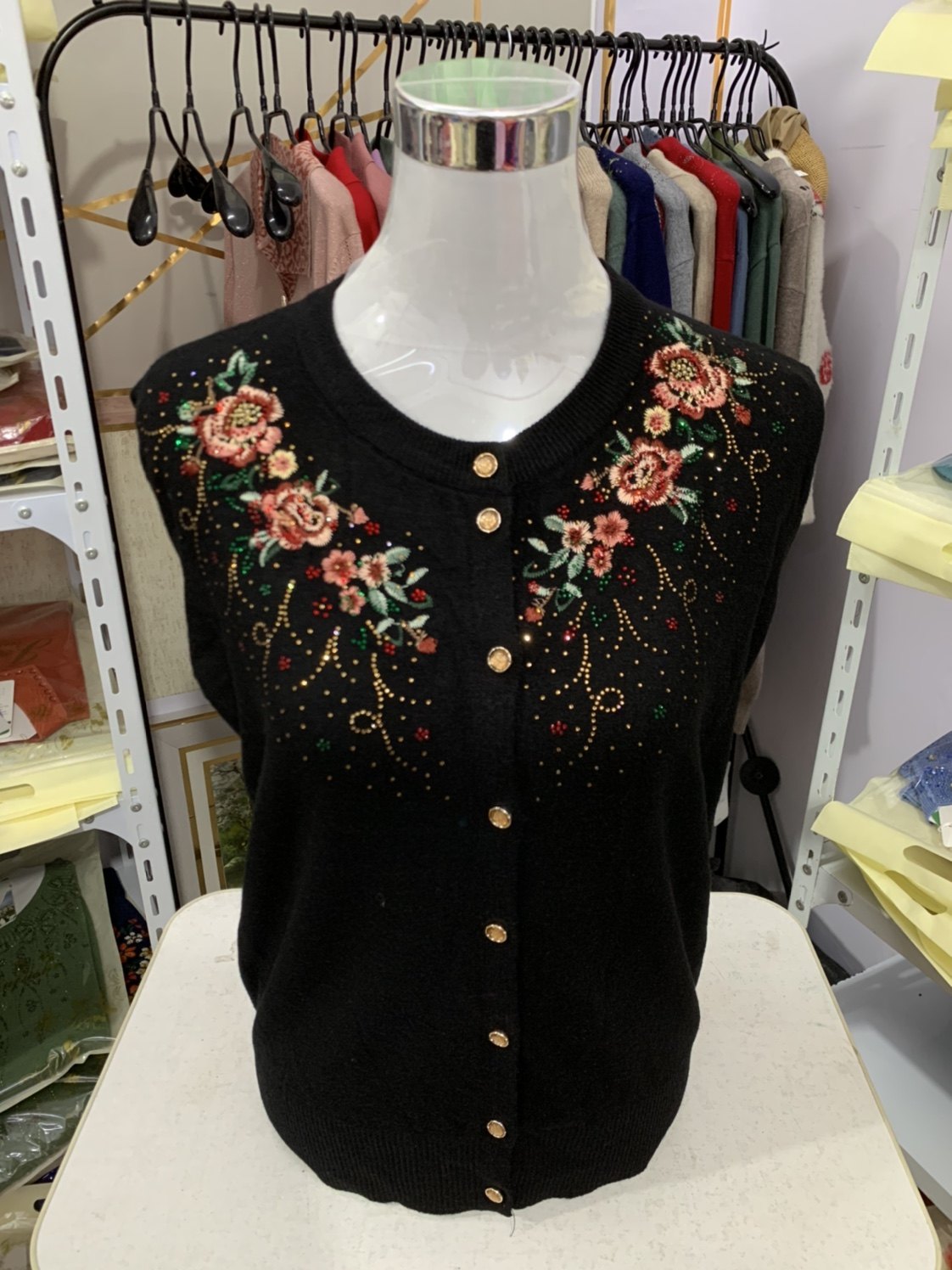 2024秋装妈妈毛衣薄款圆领刺绣羊毛开衫外套奶奶装上衣老人衣服