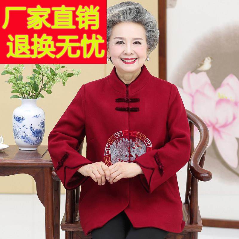 老年人唐装女婚礼妈妈装秋冬礼服中国风老人衣服奶奶秋装毛呢外套