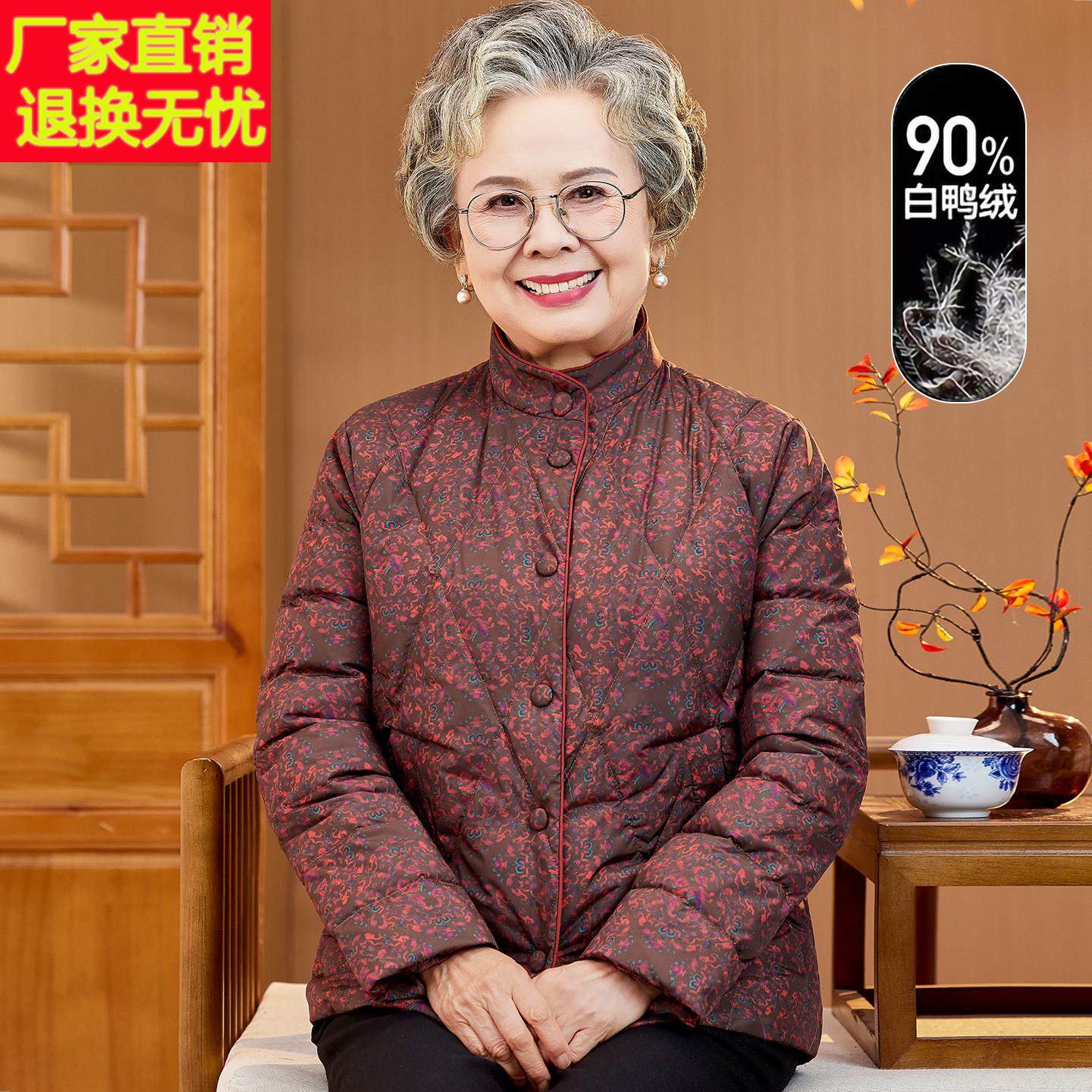 老年人羽绒服女奶奶冬装保暖白鸭绒上衣老人衣服妈妈短款轻便外套