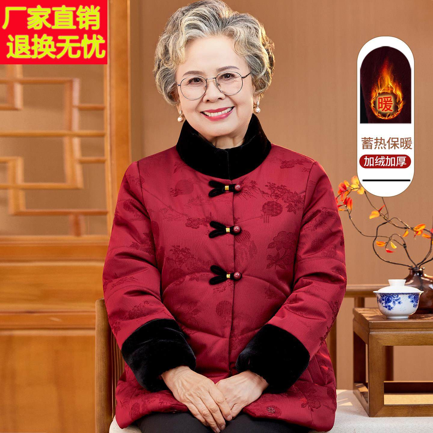 老年人女冬装奶奶加绒外套老太太保暖棉袄老人喜庆棉服妈妈装棉衣