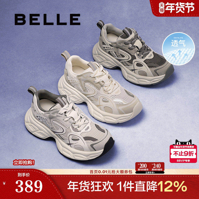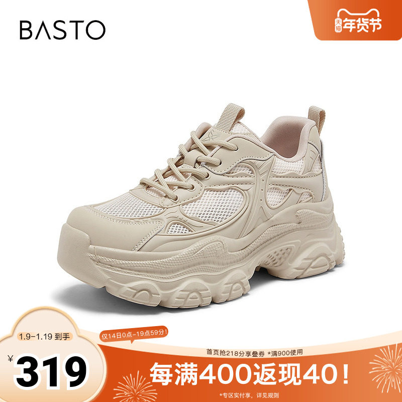 百思图2026春季新款老爹鞋时尚休闲户外运动透气女鞋D6309AM6