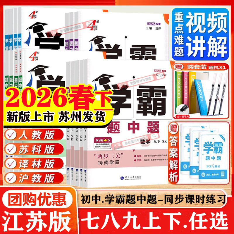 2025秋26春新版学霸题中题提数学英语物理化学七八上下册78九年级全一册苏科苏教版人教版七下五星学霸组合同步课时学霸大试卷江苏