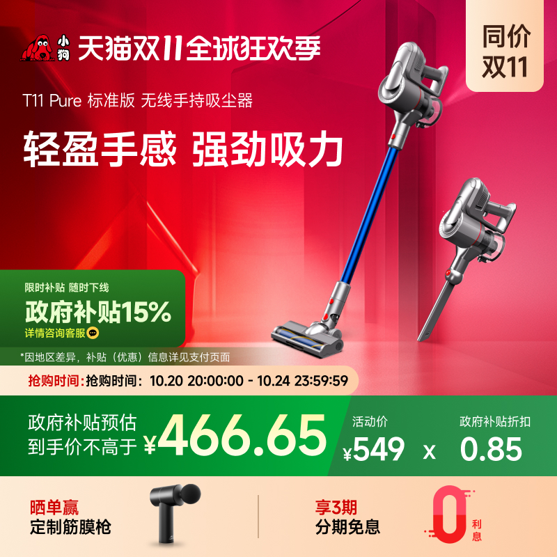 【双11抢购中国补15%】小狗无线吸尘器家用轻量吸尘机T11 Pure